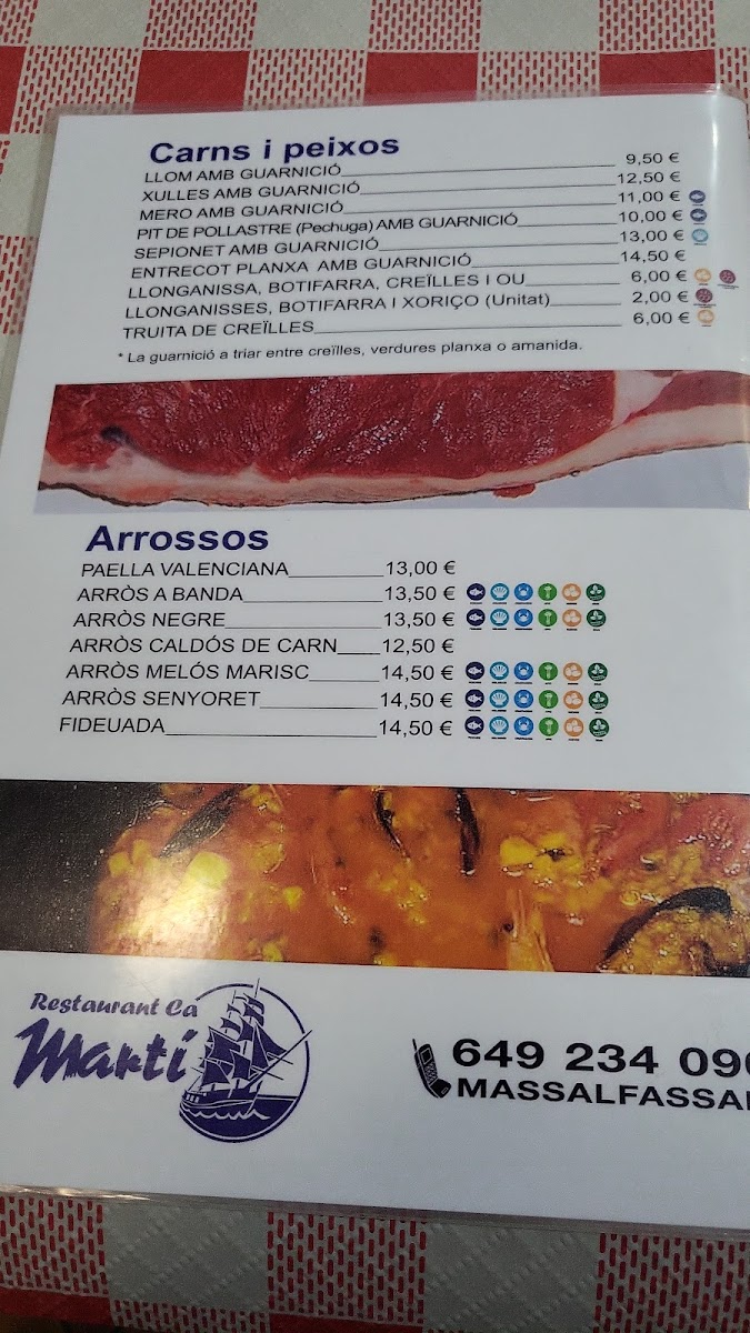 Introducing the menu at Restaurant - Casa Martí, located in Massalfassar, Valencia, is a delightful expedition into Mediterranean and Spanish cuisine. This cozy eatery is renowned for its superb selection of rice dishes, particularly the celebrated paella and the exquisite arroz del Senyoret, which many patrons rave about. The menu caters to a diverse clientele, offering gluten-free, vegan, and vegetarian options, ensuring every guest finds something to savor.